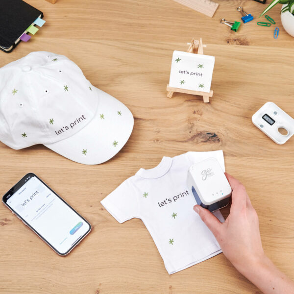 Based on inkjet technology, the e-mark go allows users to create multi-colored prints on almost any absorbent surface, such as paper, cardboard, textiles, wood, stone and many more. The printer and application e-mark go have been developed with the aim of offering intuitive handling and allowing you to easily create your individual designs.