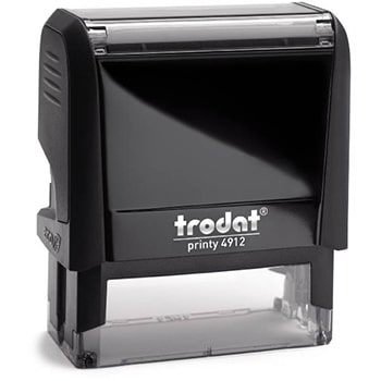 Trodat Printy 4912 avec une formule standard. Plus de 15 formules, 3 styles et 3 couleurs au choix. Si vous ne trouvez pas ici la formule dont vous avez besoin, commandez un Trodat Printy 4912 avec une plaque personnalisée.