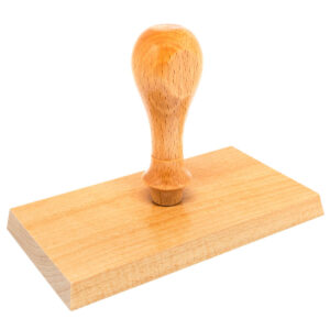 Carimbo em madeira de faia envernizada, certificado FSC.